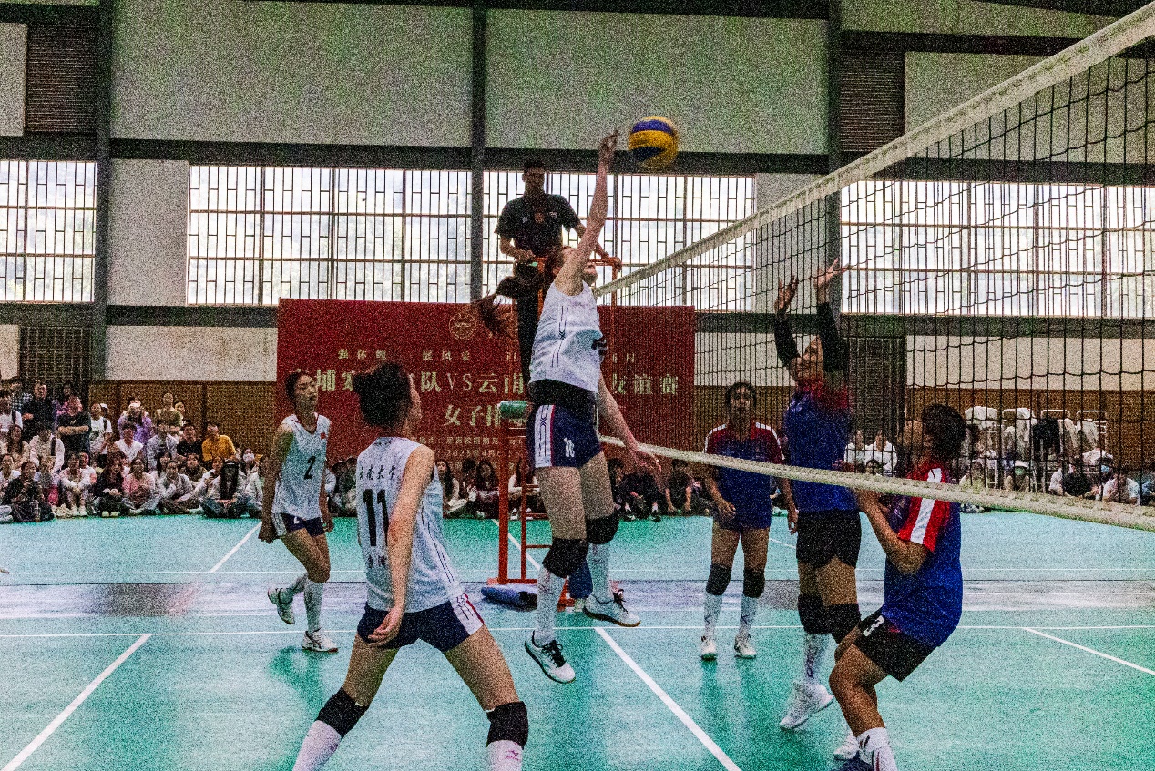 在女子排球赛上,我校女子排球队以熟练的快攻战术配合,发球、接球、扣球,多点开花,面对对手的顽强的防守和猛烈进攻,队员们防守沉稳自如,顺利拿下了三场比赛的胜利。