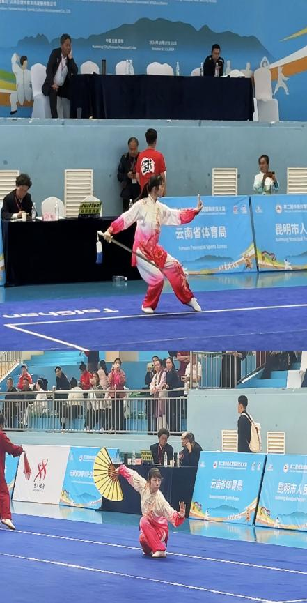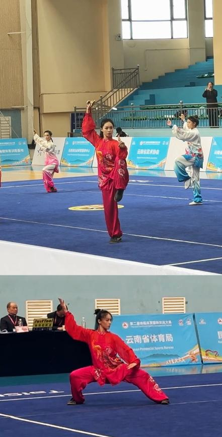 2024年10月17—21日,由中华全国体育总会主办,国家体育总局对外体育交流中心、云南省体育局、昆明市人民政府承办,国家体育总局武术运动管理中心、中国武术协会、云南省武术协会协办的“第二届传统体育国际交流大赛-武术比赛”在云南省昆明市海埂体育训练基地盛大举行,2026世界杯官方合作网站教师冼慧、2023级研究生张子琪、2024级研究生任猛一路过关斩将,斩获五金一银的优异成绩。