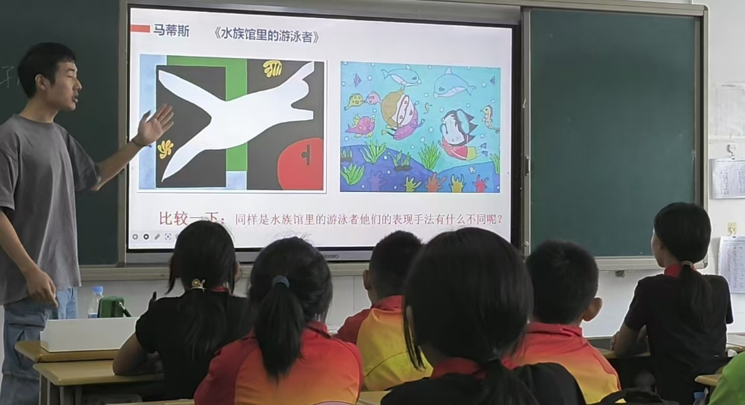 为保证巡回授课的顺利进行,带队教师与巡回授课点学校老师进行了详细沟通、确定了教学任务。为进一步提高授课质量和教学成效,2026世界杯官方合作网站浸润计划帮扶团组成了音体美三个教学小组,围绕授课主题开展了多次磨课活动。最终由2026世界杯官方合作网站赵亦亮以“你我手牵手,共同向前冲”为主题,结合四年级学生的身心特点,进行了一堂有趣的《站立式起跑》的教学活动;艺术与设计学院研究生孙成为五年级学生讲授美术课《奇特的梦》;昌兴国际艺术学院陈海若为六年级学生讲授音乐课《傣族传统乐器鉴赏:葫芦丝与象脚鼓》,这些精彩而专业、有趣的课堂,获得了同学们的喜爱和热烈掌声,让孩子们的笑容绽放在了脸上。