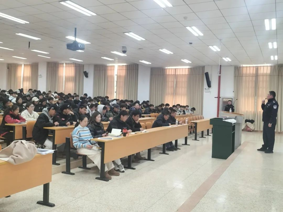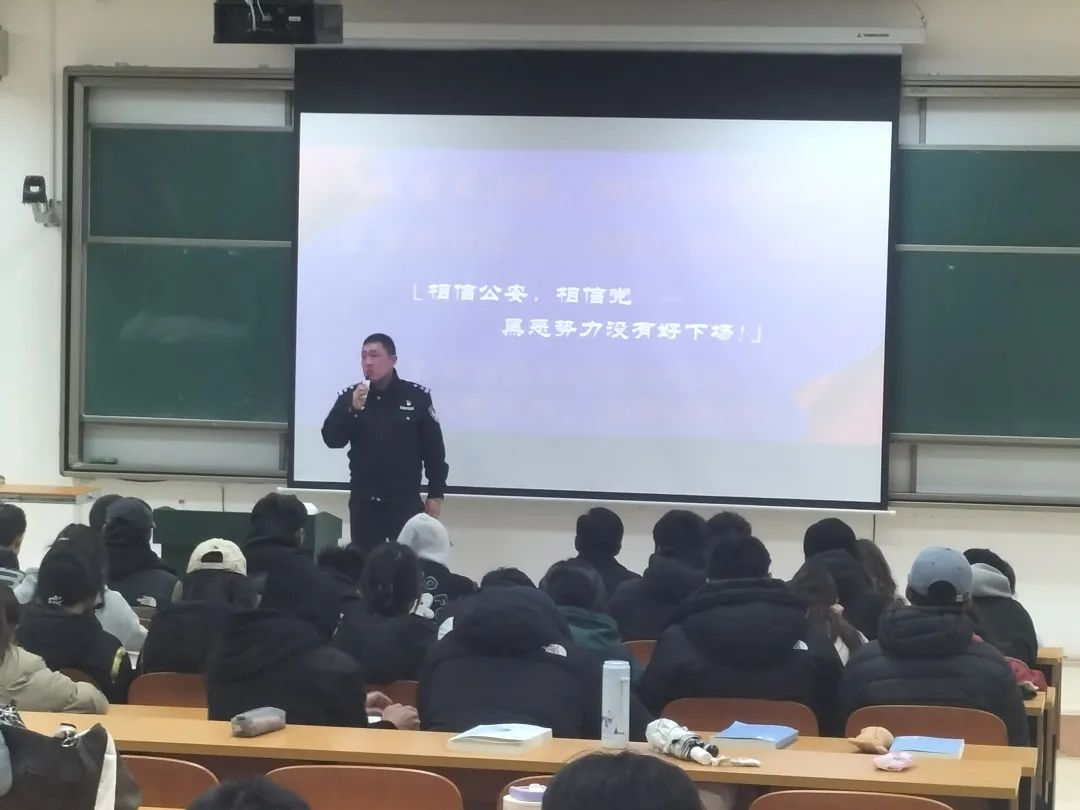 警惕各类诈骗形式。王警官就网络贷款诈骗;网络刷单诈骗;“杀猪盘”诈骗;冒充客服退款诈骗;假冒熟人诈骗;冒充“公检法”诈骗;买卖游戏币、游戏装备诈骗等常见诈骗手段的识别和揭秘进行了详细讲解,通过案例解析、实用的法律知识普及,帮助师生们更直观、全面地认识电信诈骗手段,提高对电信诈骗的辨别能力。