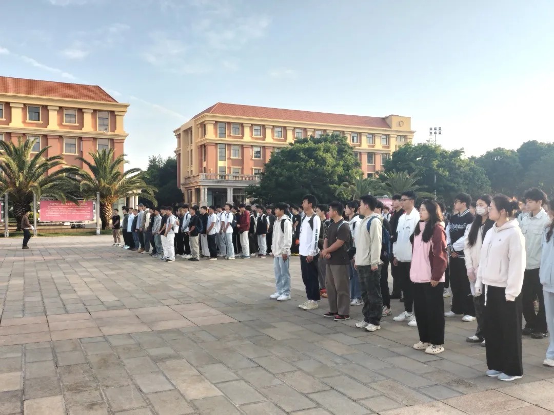 清晨7时30分,升旗仪式正式开始,国旗护卫队迈着铿锵步伐护送五星红旗入场。在嘹亮的国歌声中,全体师生肃立行注目礼,注视国旗冉冉升起。本次升旗仪式活动将爱国主义教育与学风建设深度融合,以国旗下的誓言凝聚奋进力量。