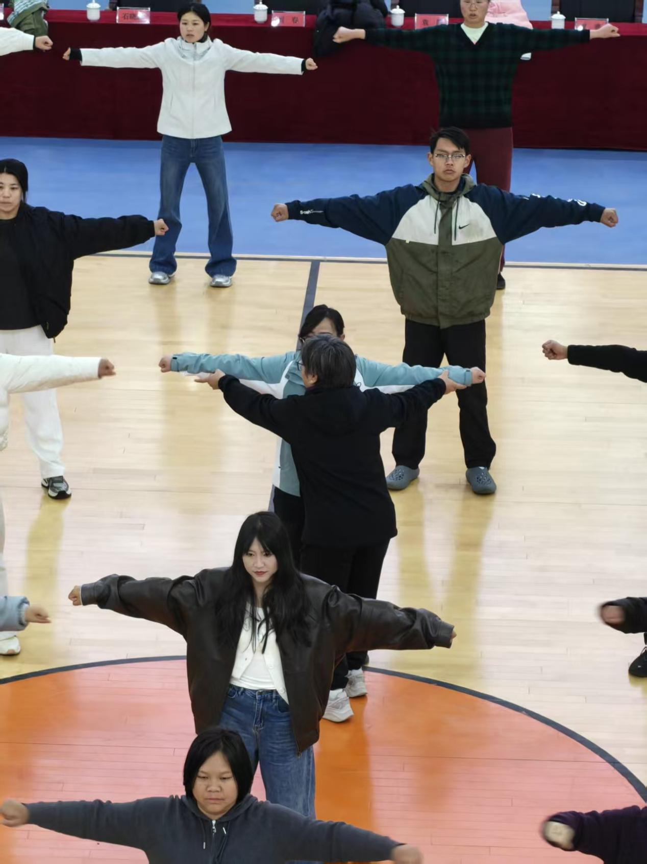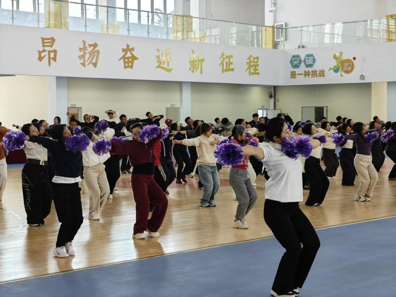理论教学环节,授课团队围绕啦啦操项目发展历程、创编逻辑、竞赛规则解读及健身操舞的校园融创应用等内容进行深度讲解,帮助参训教师构建完整的理论知识体系,破解教学中的难点与痛点,实现从“会跳”到“会教、会编”的能力提升。实操教学环节,团队从啦啦操核心基础入手,系统讲授36个标准基本手位、核心步伐及规范的身体姿态训练方法;针对校园教学高频场景,重点拆解花球啦啦操完整套路、技巧啦啦操托举与配合动作的教学要点。