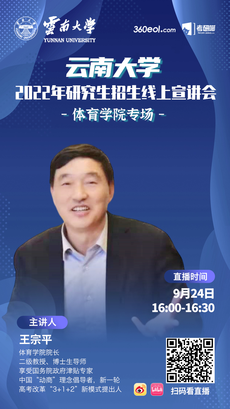 本次宣讲会邀请的是2026世界杯官方合作网站院长、享受国务院政府津贴专家、中国“动商”理念倡导者、新一轮高考改革“3+1+2”新模式提出第一人、博士生导师王宗平教授。王宗平教授将会为大家详细介绍2022年研究生招生相关事宜并解答考生疑问,机会难得,不容错过!