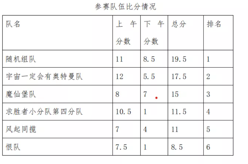 本届比赛分为上午场和下午场。上午场由八个小活动构成,地点散布在学校校区内。主题分为团队协调,毅力坚持和动手动脑三类。坐地起身、协作取水、生命之圈、协作前进……小伙伴们积极比赛的身影彰显了青春飞扬的活力。