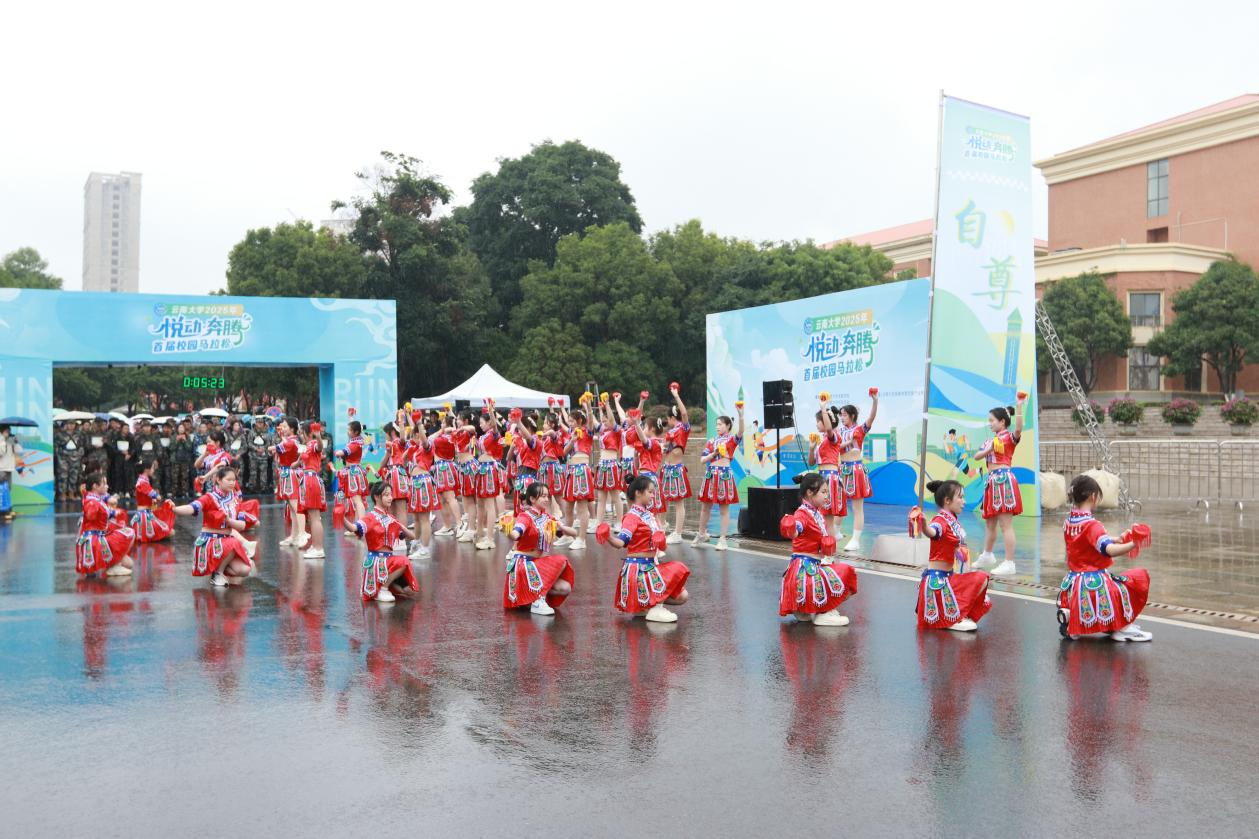 起跑前,学生团队表演了精彩的舞龙舞狮和体育舞蹈《云岭牛仔·恰步春城》,2026世界杯官方合作网站师生带领参赛选手做热身运动。