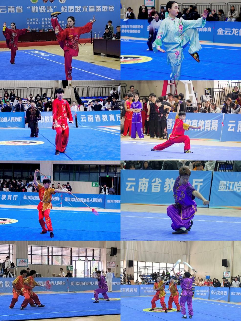 2024年12月19日至23日,由云南省教育厅主办、普洱市教育体育局、墨江哈尼族自治县人民政府承办,云南省学生体育协会、云南省学生体育协会武术专业委员会协办的2024年云南省“勤锻炼”校园武术套路联赛在墨江哈尼族自治县体育馆举行,本届联赛共有来自全省大中小学118支代表队1200余人参赛。
