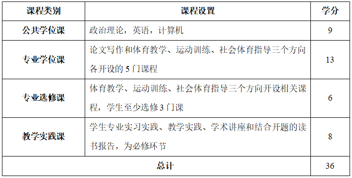 按照国家学位办《体育硕士专业学位研究生指导性培养方案》的有关规定,并结合云南的实际情况,以及我校体育学科发展的优势,体育专业硕士课程设置模块如下表所示: