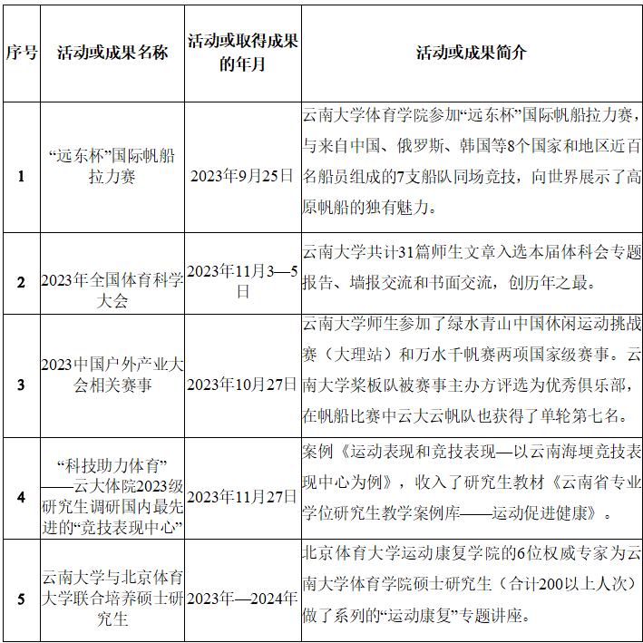(5)在师资队伍方面,有2人攻读博士,新增多名导师。基地高度重视师资队伍的建设,组建了一支高水平、专业化的教师团队。教师团队展现出丰富的专业实践经验以及较强的科研能力,可有效指导学生进行科学研究与实践活动。他们不仅在学术层面建树颇丰,还与体育行业紧密关联,为学生创造更广阔的发展平台。