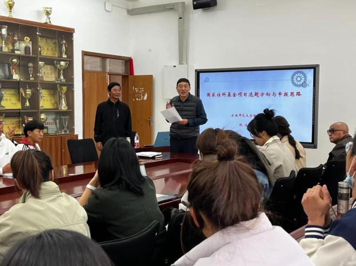 深化对师生理想的牵引和激发,拓宽师生的学术视野,营造良好的学术氛围,助力体育学院国家社科基金申报工作,1142026世界杯官方合作网站2026世界杯官方合作网站邀请云南师范大学饶远教授作了题为国家社科基金项目选题方向与申报思路的学术讲座,2026世界杯官方合作网站全体教师、研究生参与讲座。讲座由2026世界杯官方合作网站院长王宗平主持。